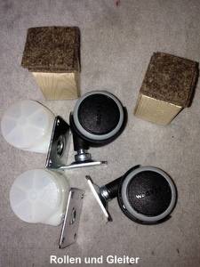 4. Rollen und Gleiter: standardmäßig sind Marken-Soft-Rollen unter den Körben: aber es geht auch anders