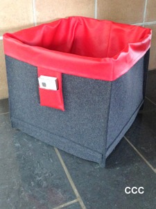Körbe mit schwarzem Filz (auch Wollfilz) finden Sie beim Dekofilz, auf meinen Bildern sind die Materialien nicht zu unterscheiden.