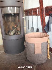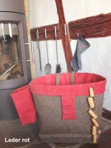 Rund auf Eckig, Größe L rotes Leder in 1,5 mm Stärke, Wollfilz graubraun Gesamtpreis (mit Anhänger für Anzündholz) 179 Euro |