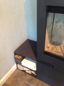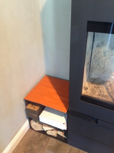 Seit einiger Zeit gibt es viele Öfen mit seitlich angebrachten Bänken für Holz etc..